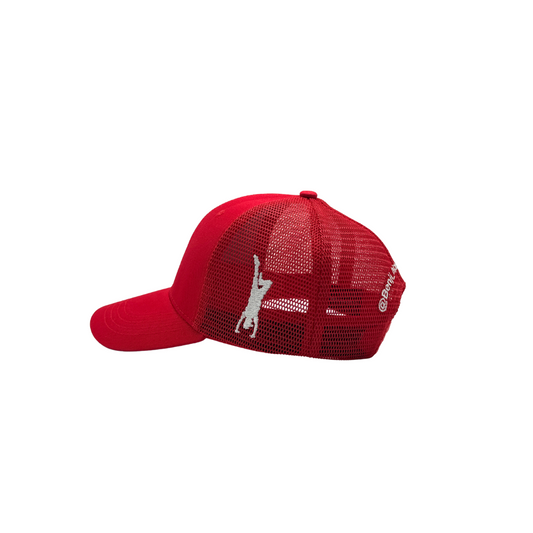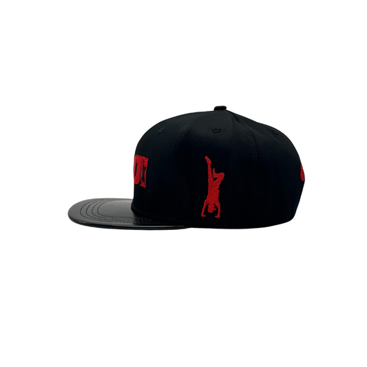Handstand Red Cotton fabric and PU leather brim Snapback cap
